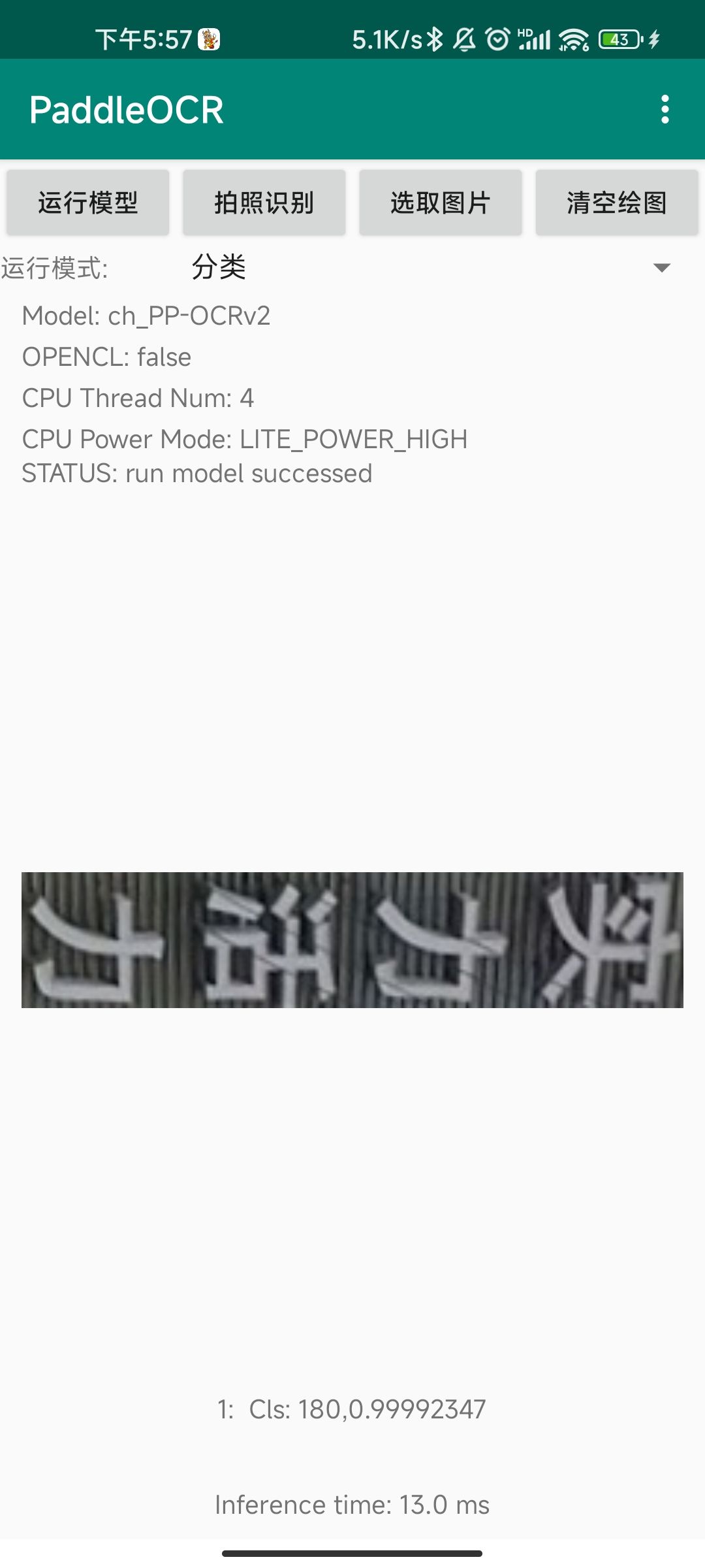 • 拍照识别:唤起手机相机拍照并获取拍照的图像,拍照完成后需要点击运行模型进行识别