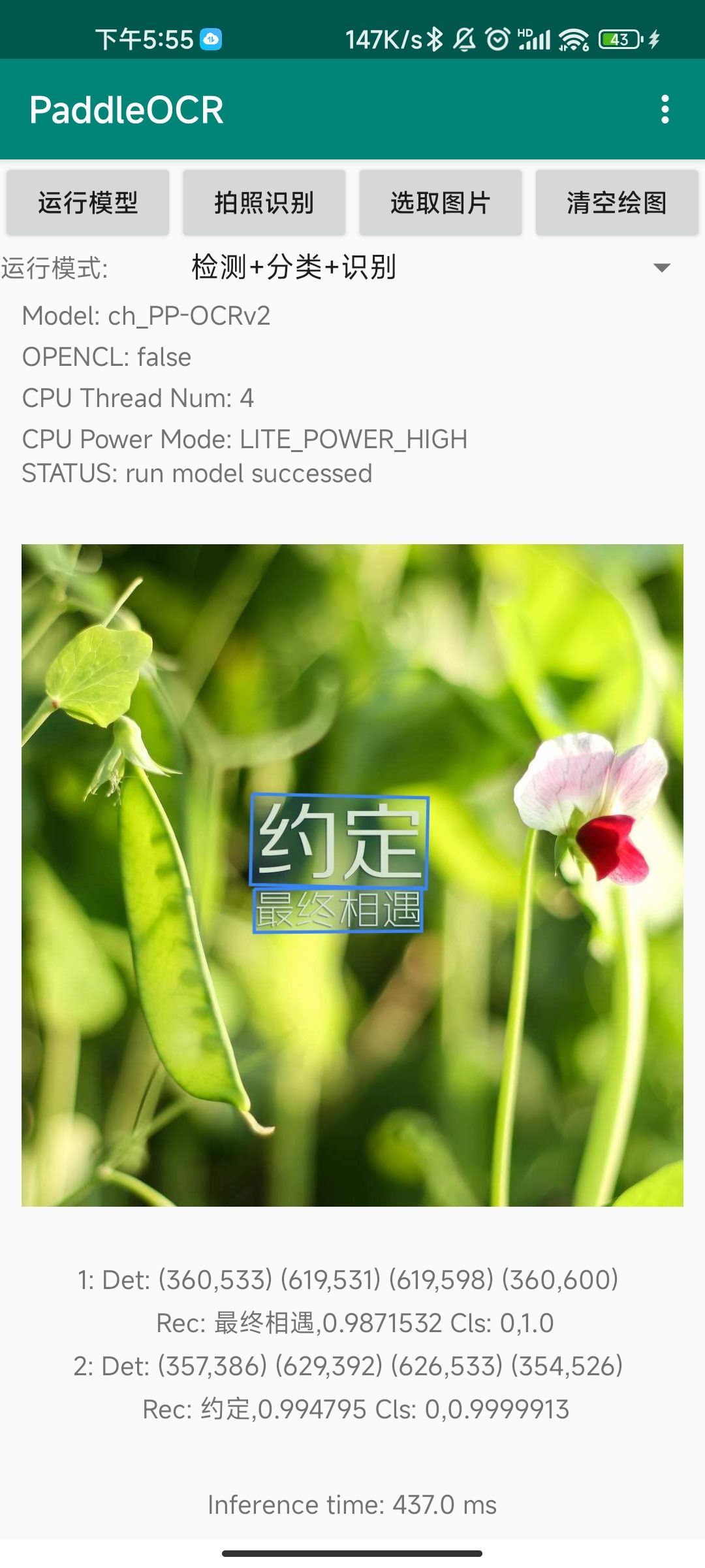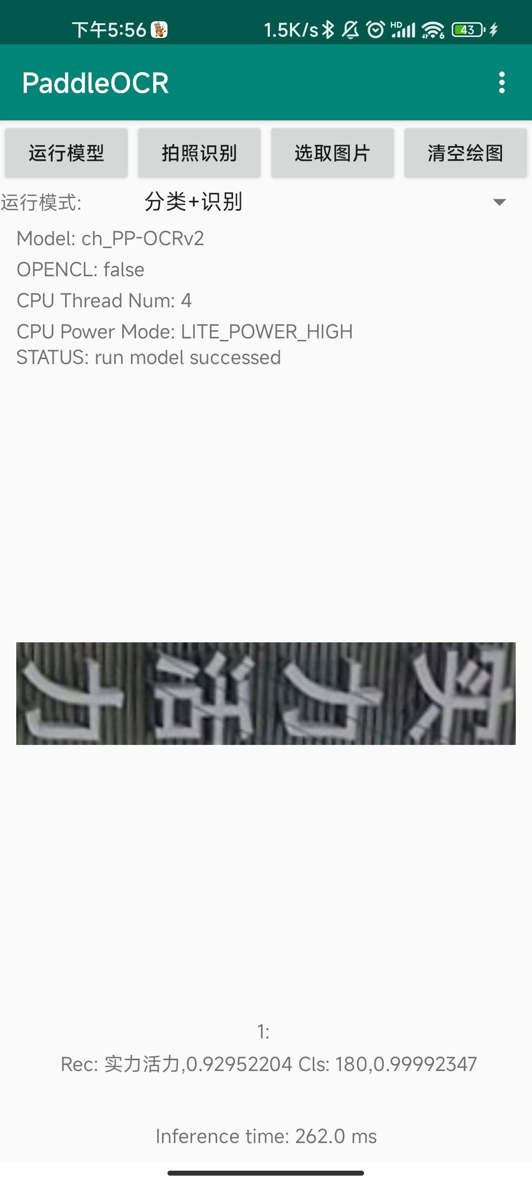 点击运行模型后,会按照所选择的模式运行对应的模型,检测+分类+识别模式下运行的模型结果如下所示: