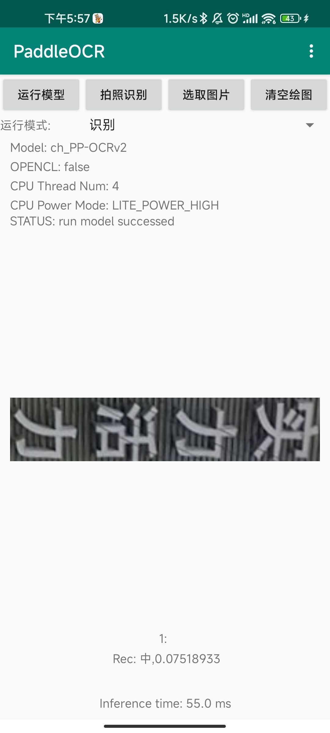 • 清空绘图:清空当前显示图像上绘制的文本框,以便进行下一次识别(每次识别使用的图像都是当前显示的图像)